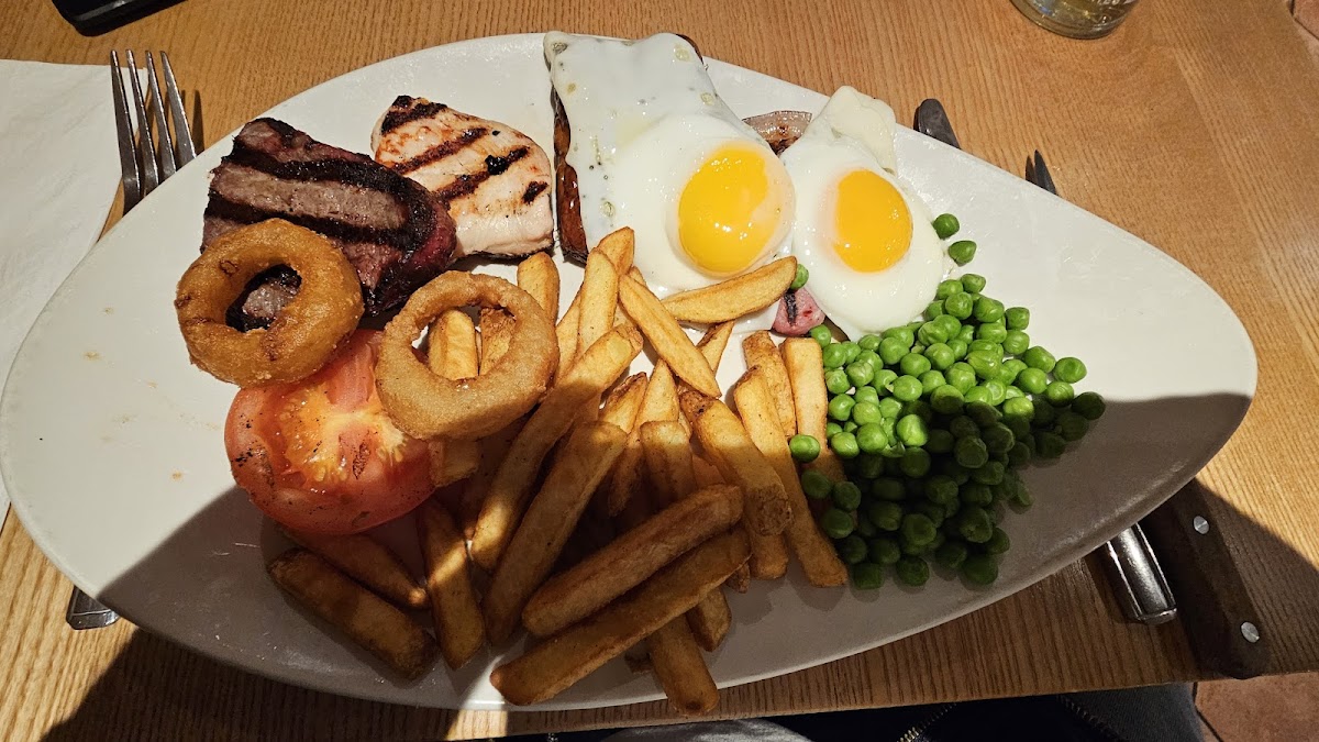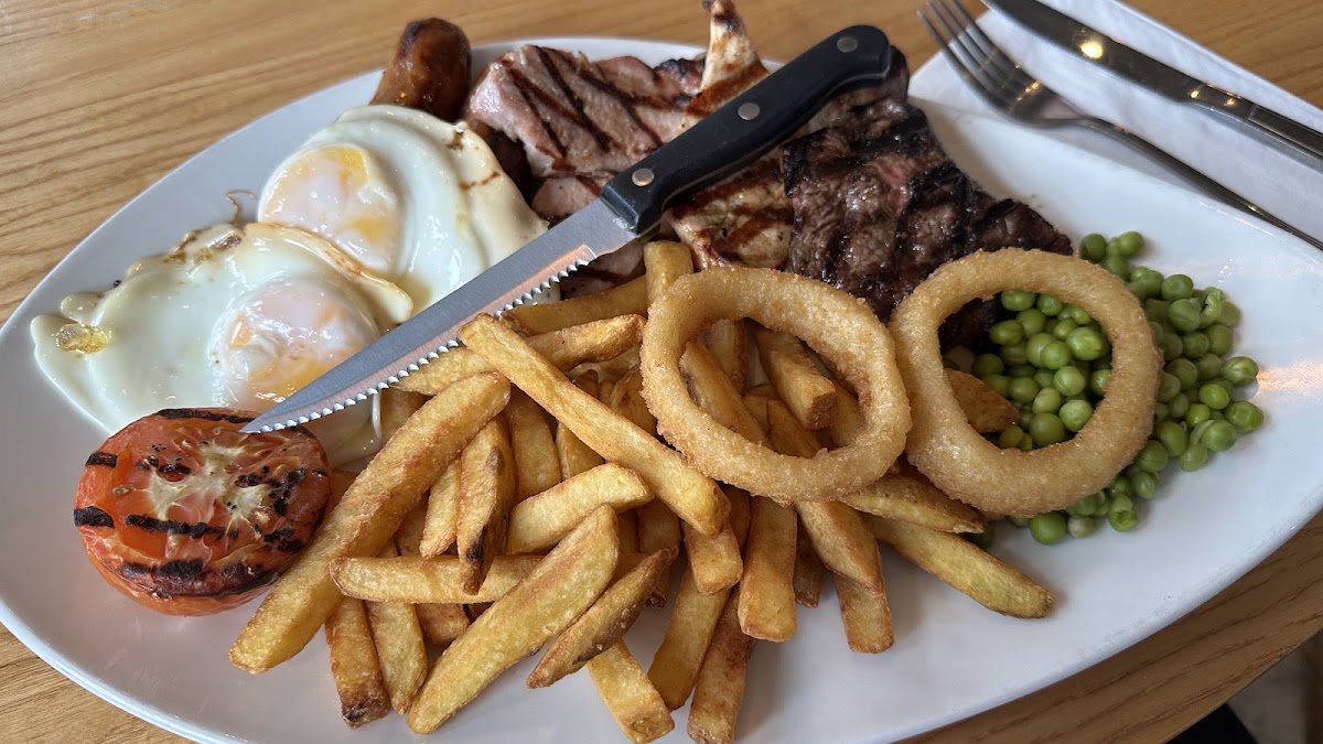 Fish lovers will appreciate the Fish and Chips, with its crispy batter and tender fish, accompanied by a side of golden fries. For those with a taste for breakfast, their Full English Breakfast is a generous plate brimming with all the essentials, from eggs to sausages, beans, and grilled tomatoes. If you're in the mood for something light, the Prawn Cocktail offers a fresh and tangy starter that's as delicious as it is refreshing.